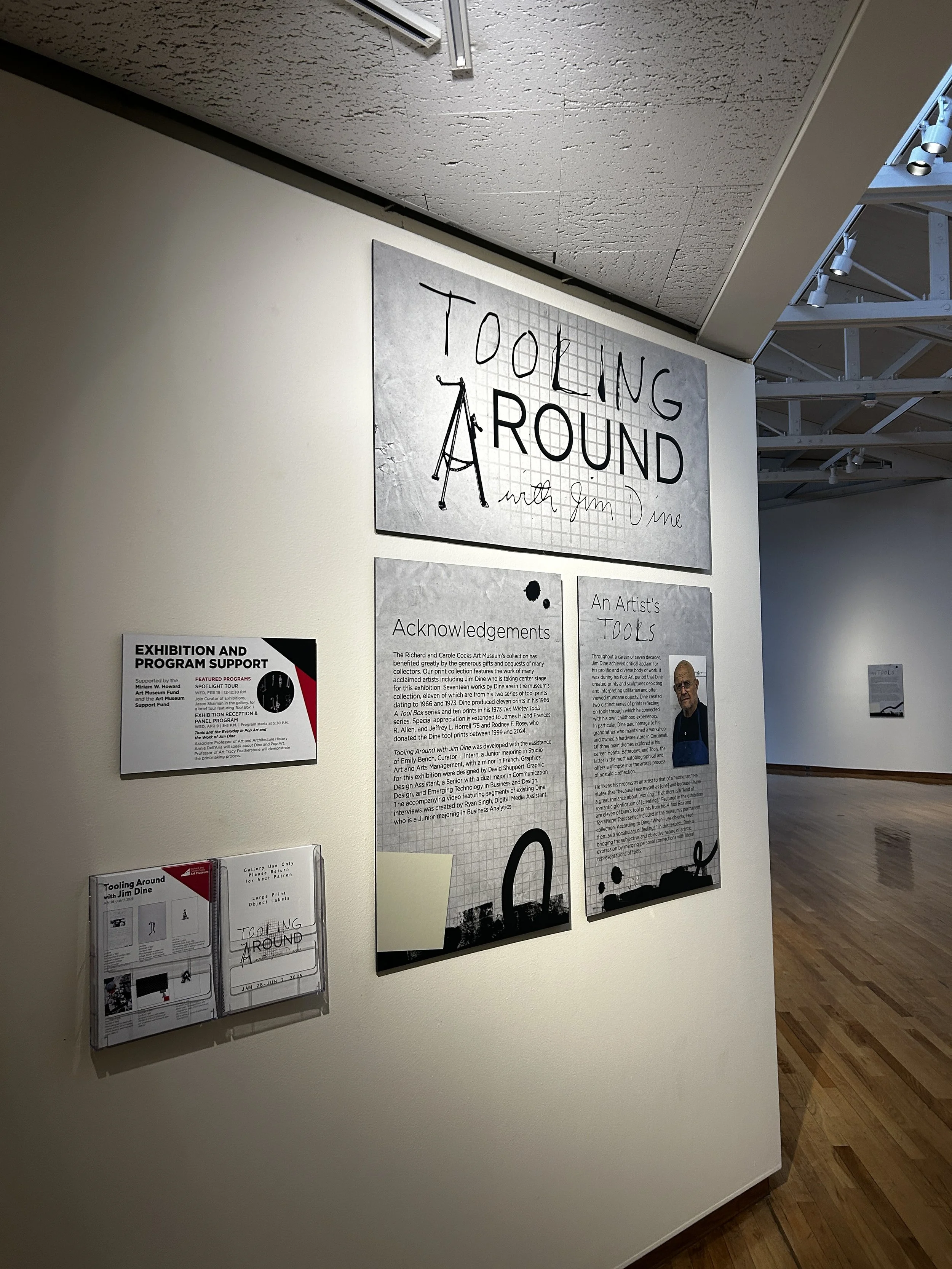 This exhibition featured the work of American artist Jim Dine, known for his neo-Dada and pop art style. I developed the theming, wall graphics, printed materials, and social media templates. The biggest challenge was adapting Dine’s bold visual style into supporting graphics that complemented his portraits without directly replicating his artwork.